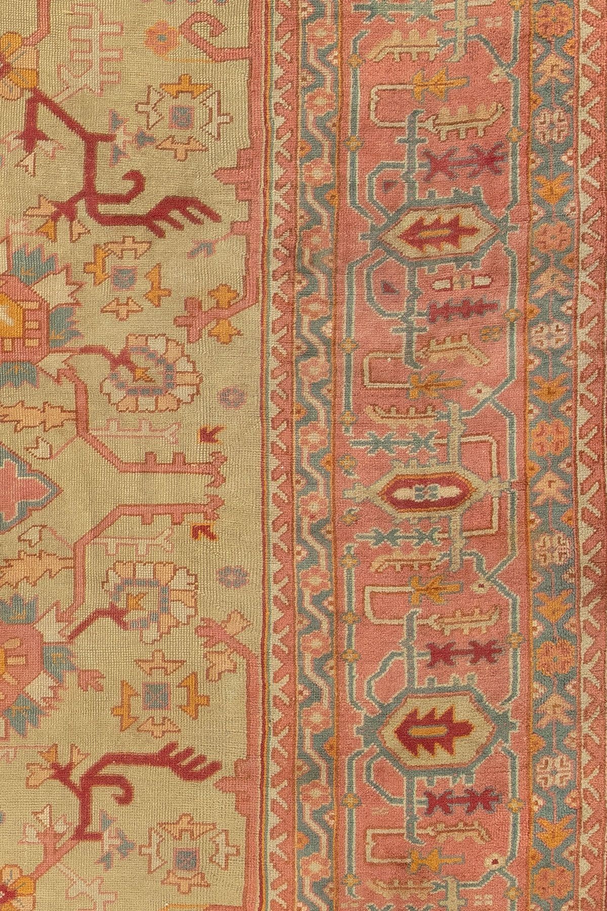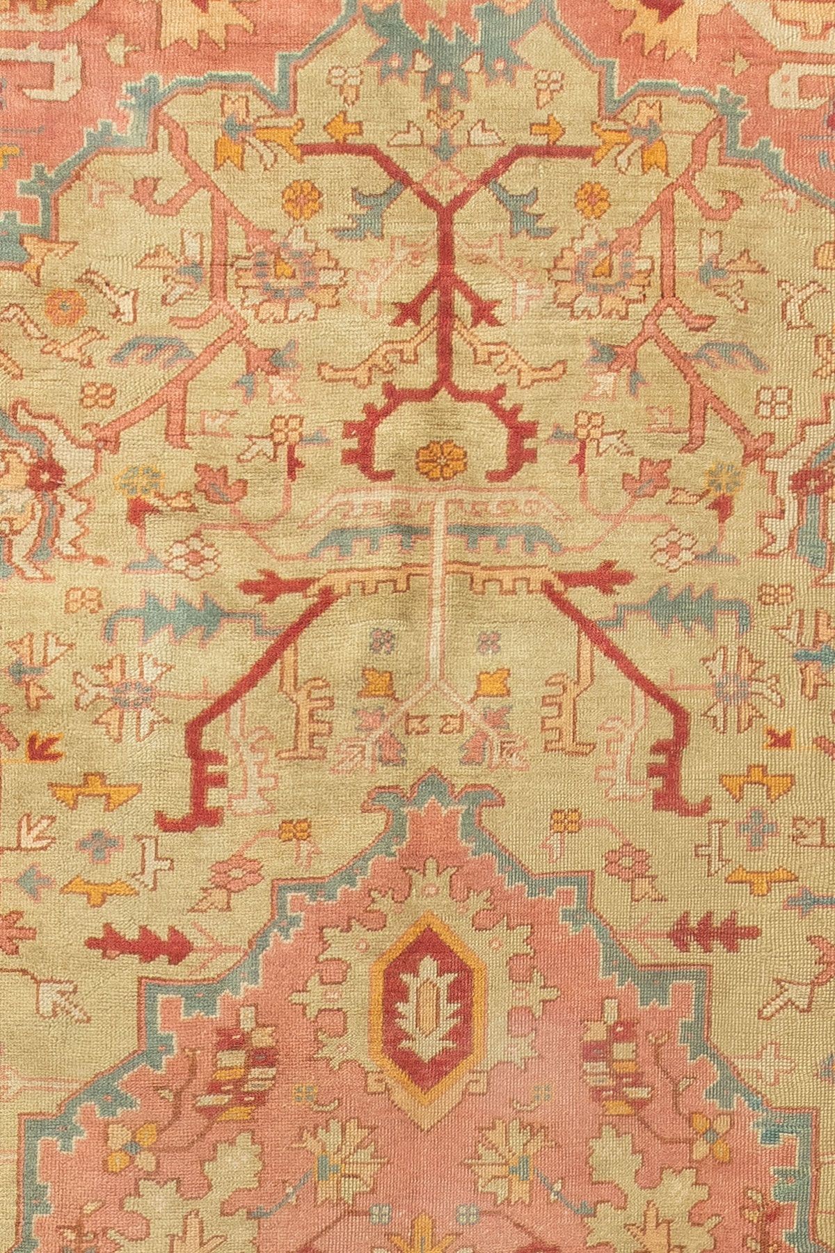 Large Green Pink Antique Turkish Oushak rug no. J4413