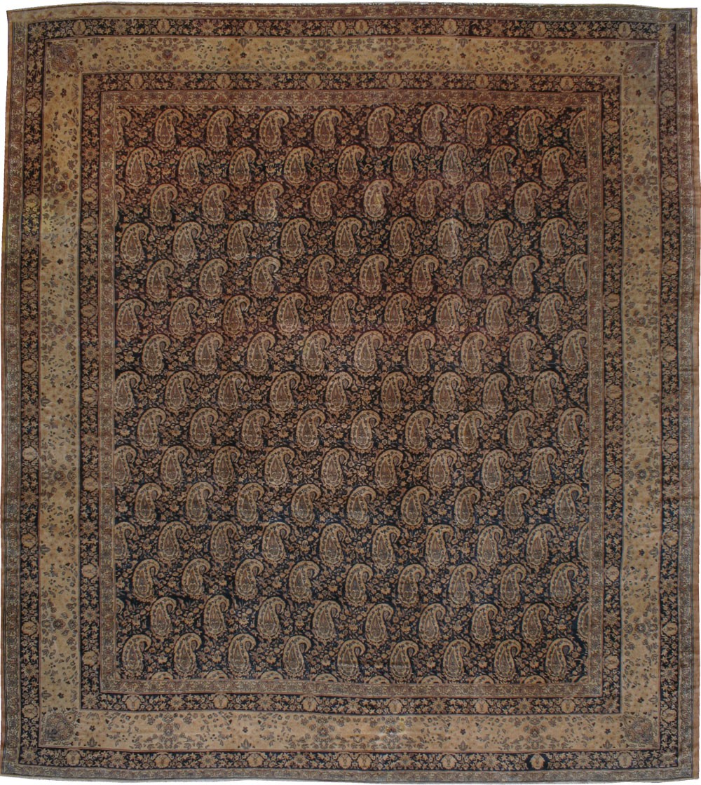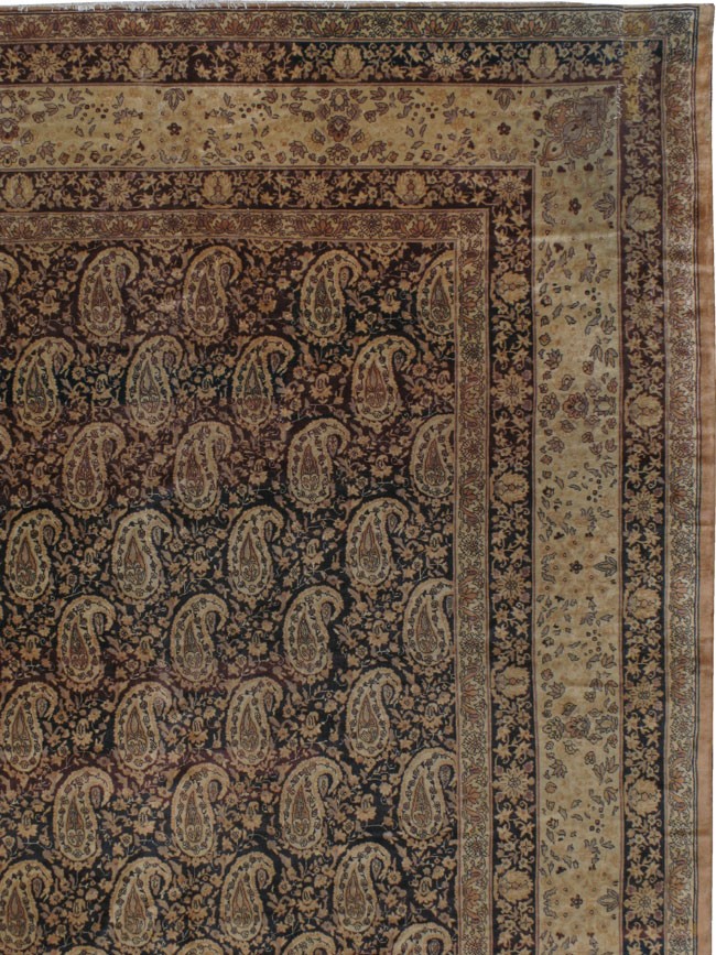 an early 20th century Persian Senneh rug with an overall boteh design on an abrashed brown ground,dominant accents in taupe