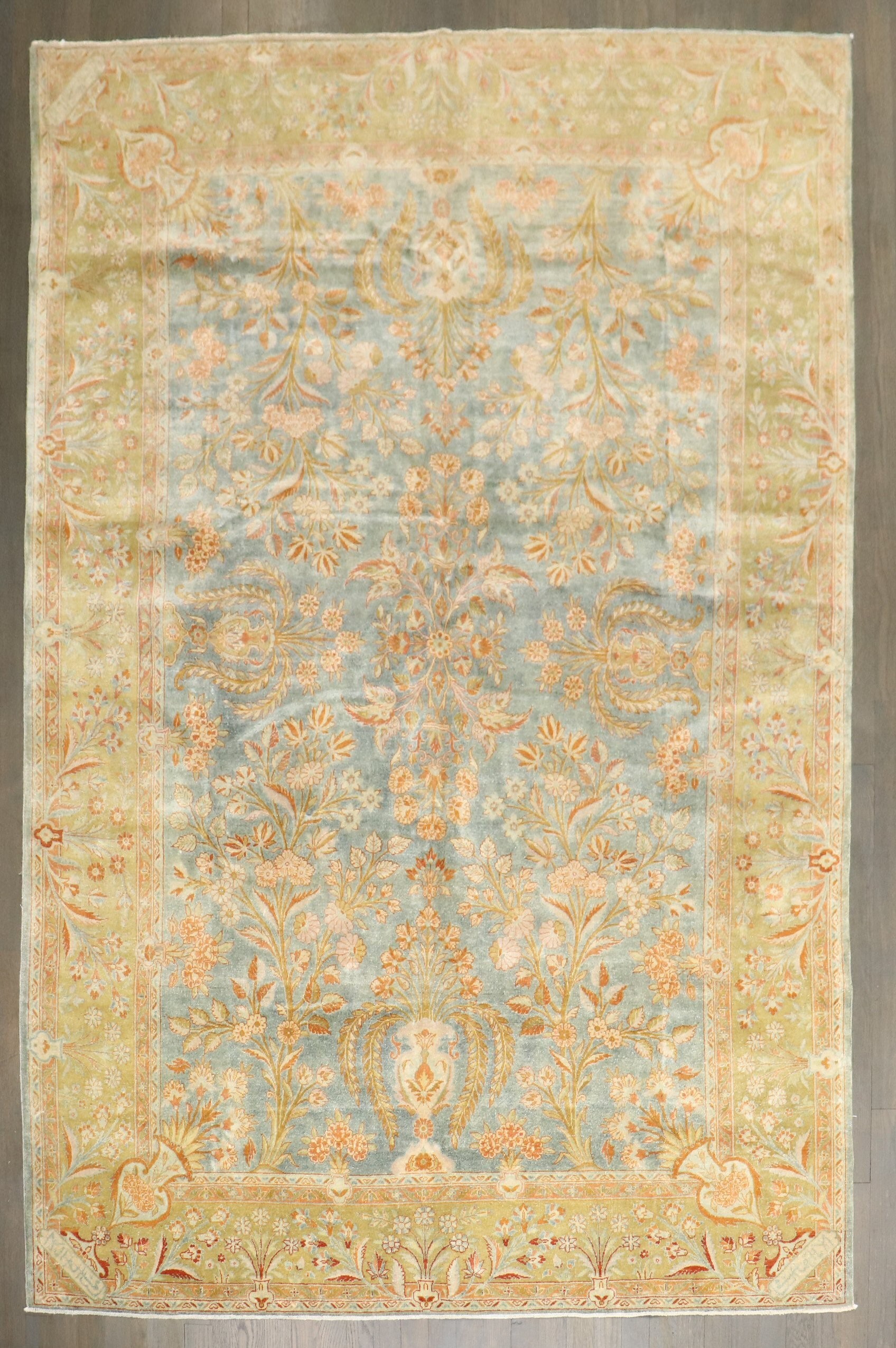 a foyer size signed Antique Persian Kashan Rug from the 1st quarter of the 20th century