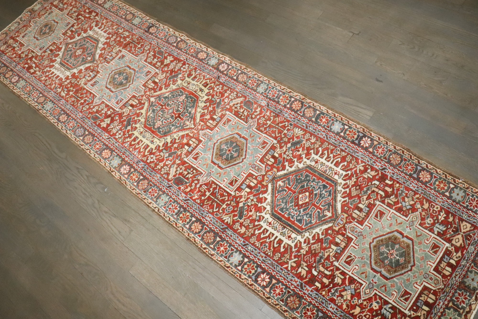 a narrow mid 20th century rustic Persian Heriz Runner