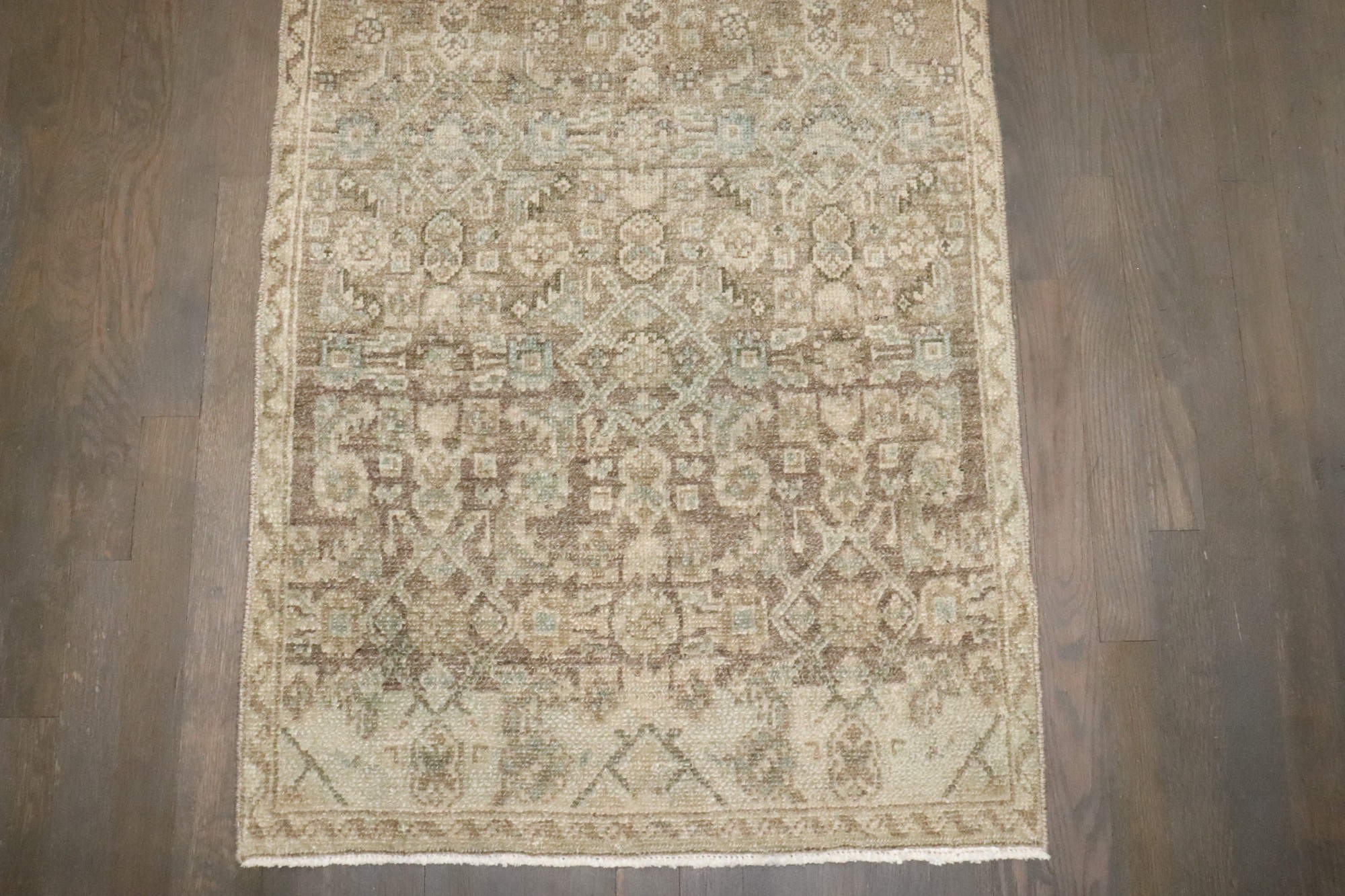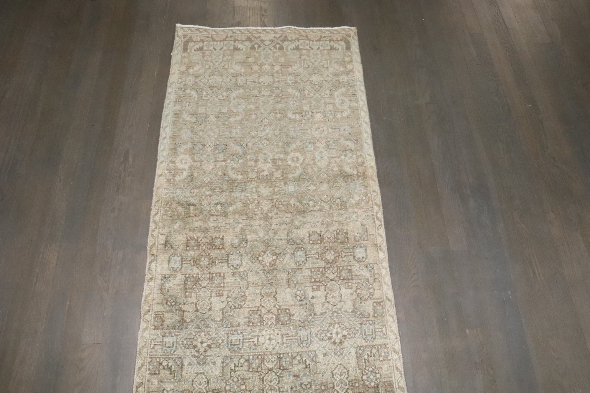 a neutral colored narrow persian malayer runner from the 2nd quarter of the 20th century