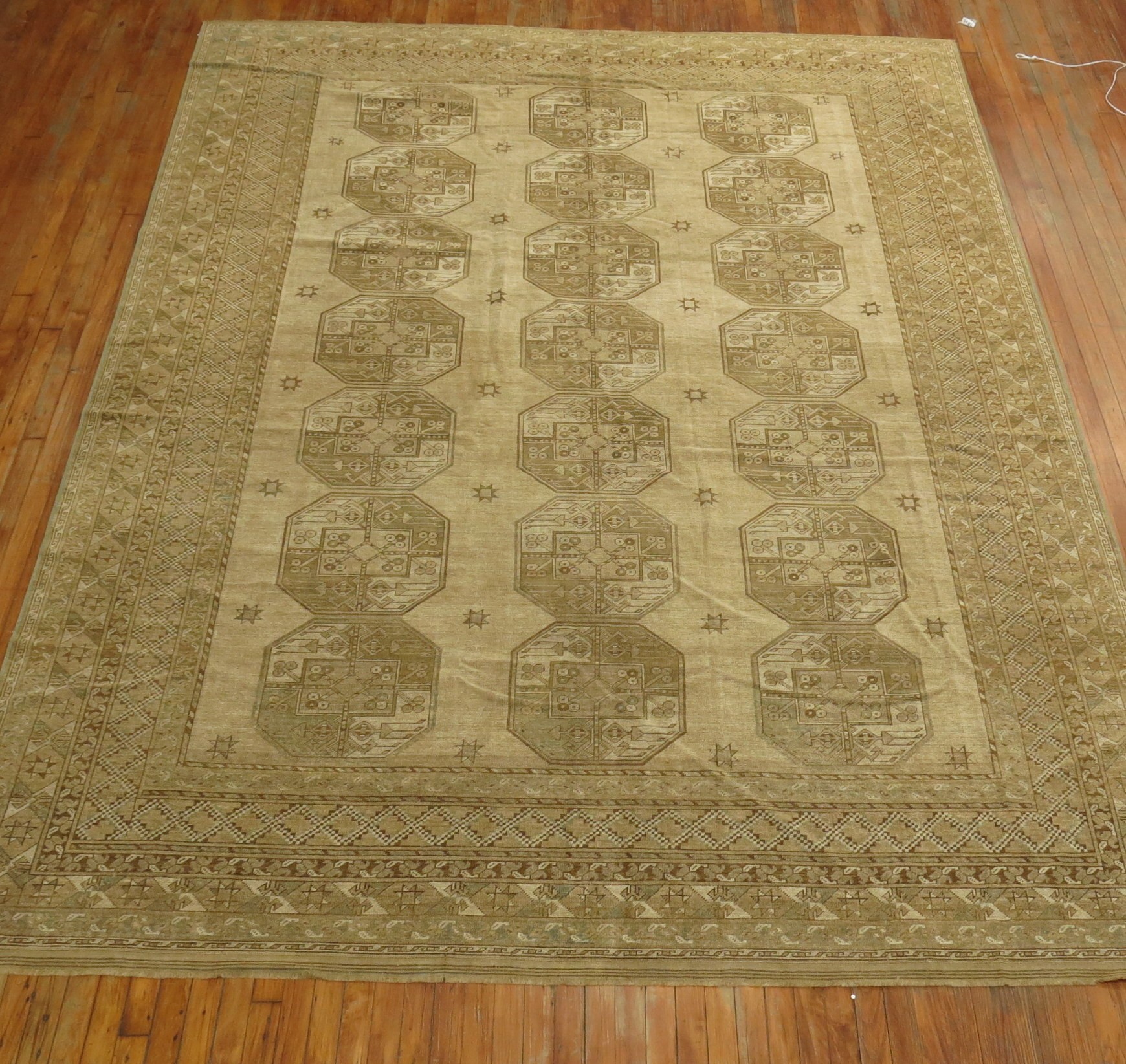 A room size ersari rug in lovely beiges and browns, circa 1920