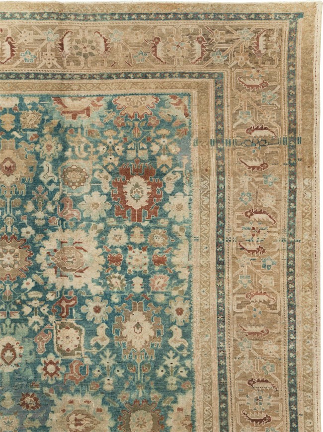 Stunning early 20th century persian malayer rug with a light blue field and rust border.