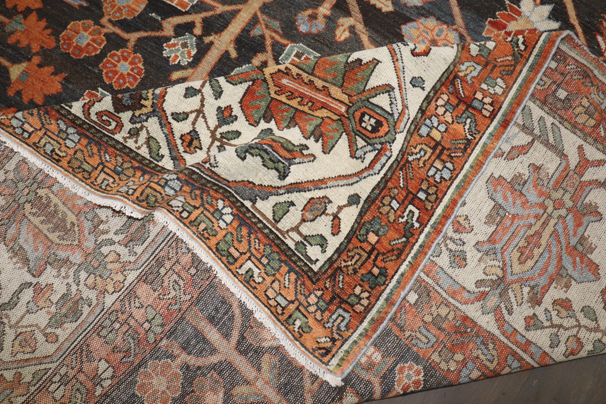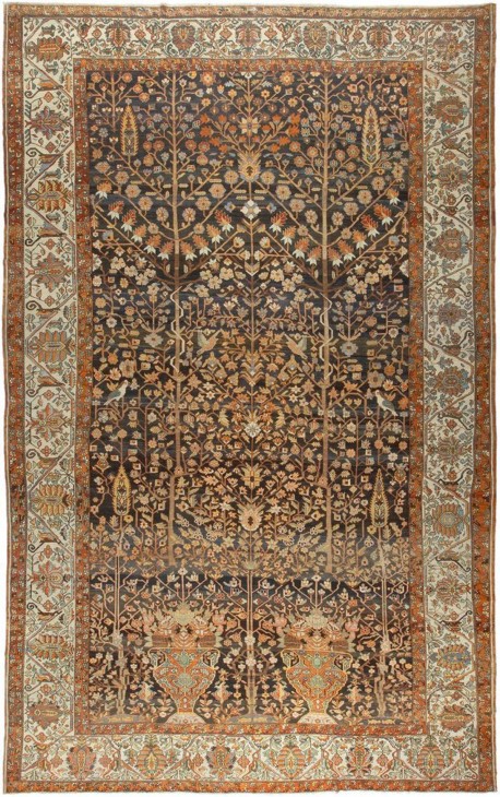 An early 20th-century beautiful brown Persian Bakhtiari Oversized rug with a small snake found