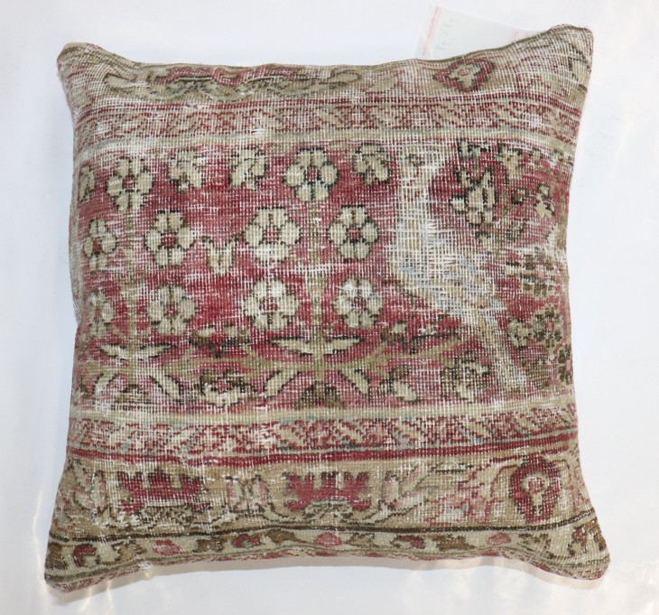 a pillow made from an early 20th-century worn persian pictorial rug
