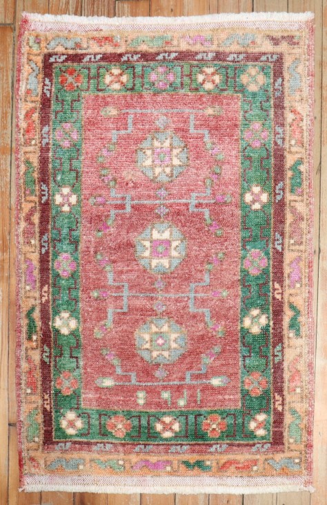 A pink Anatolian mini rug from the 3rd quarter of the 20th century