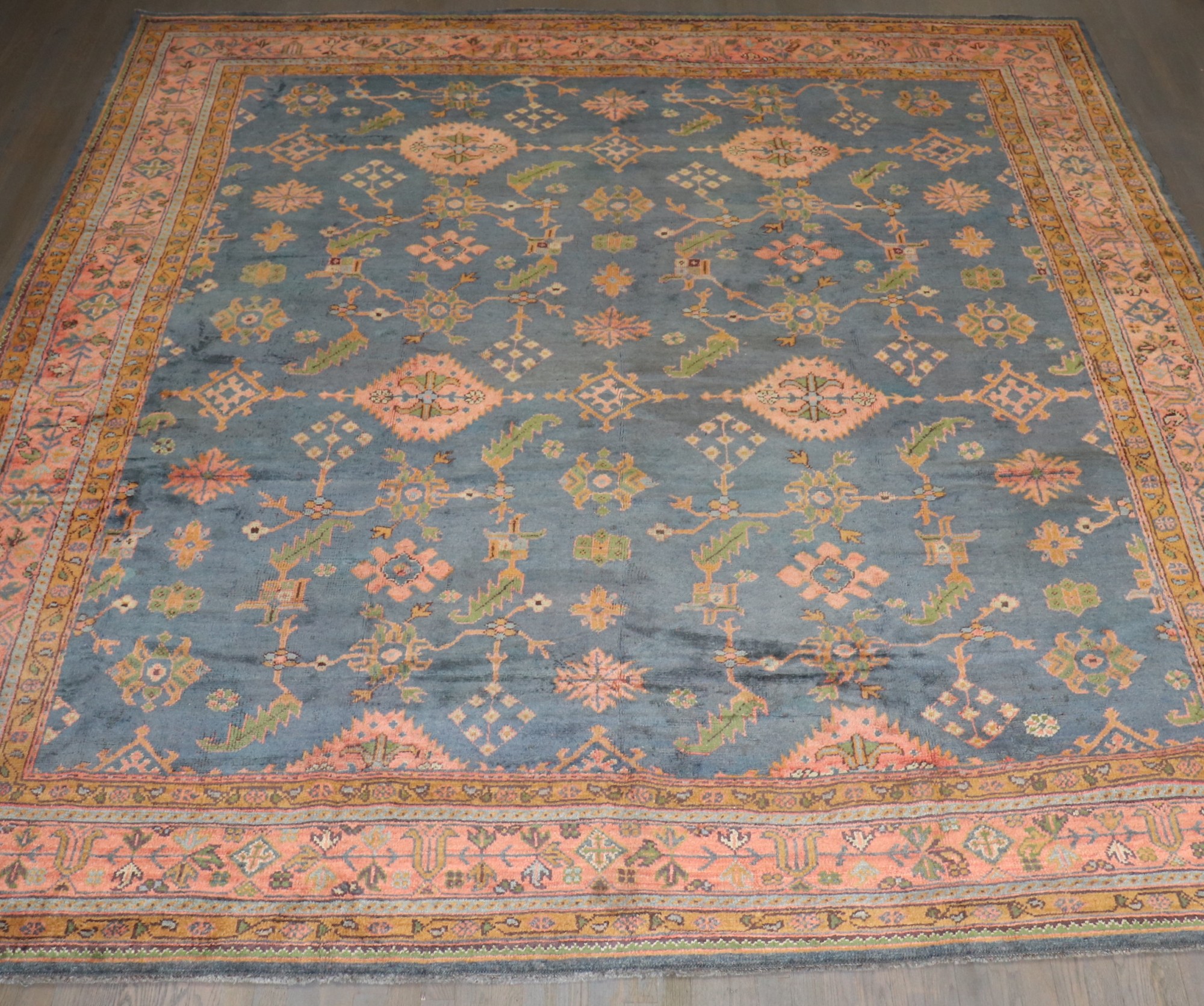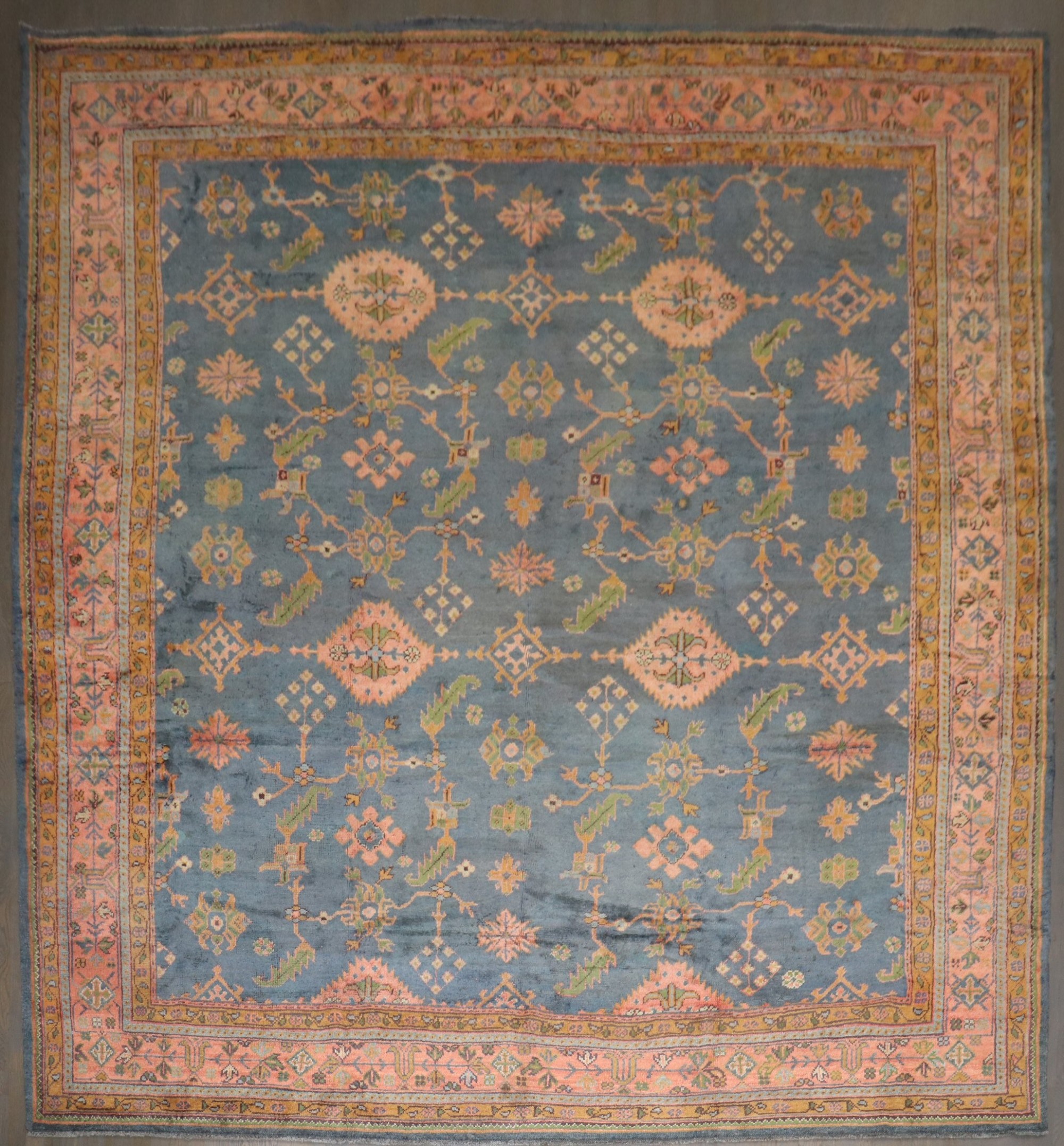a 1900s Square Size Antique Turkish Oushak Room size rug
