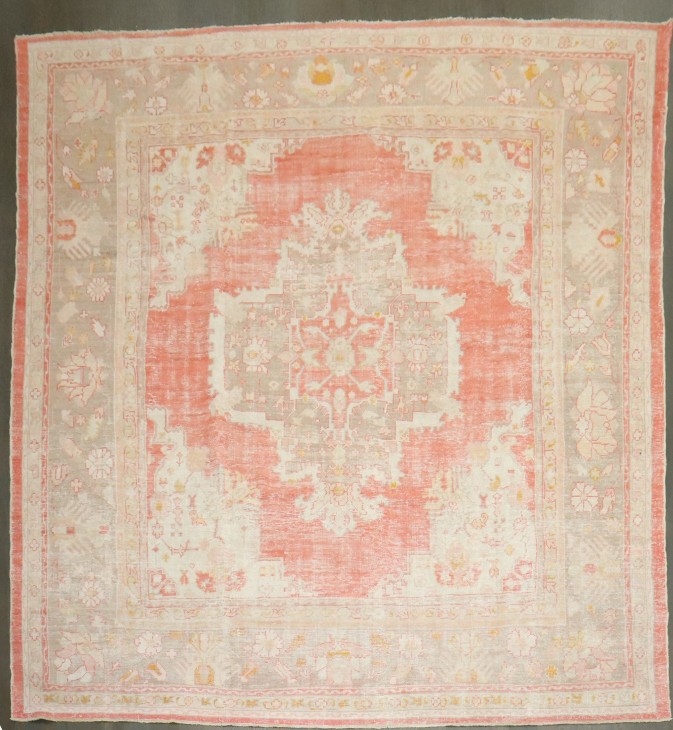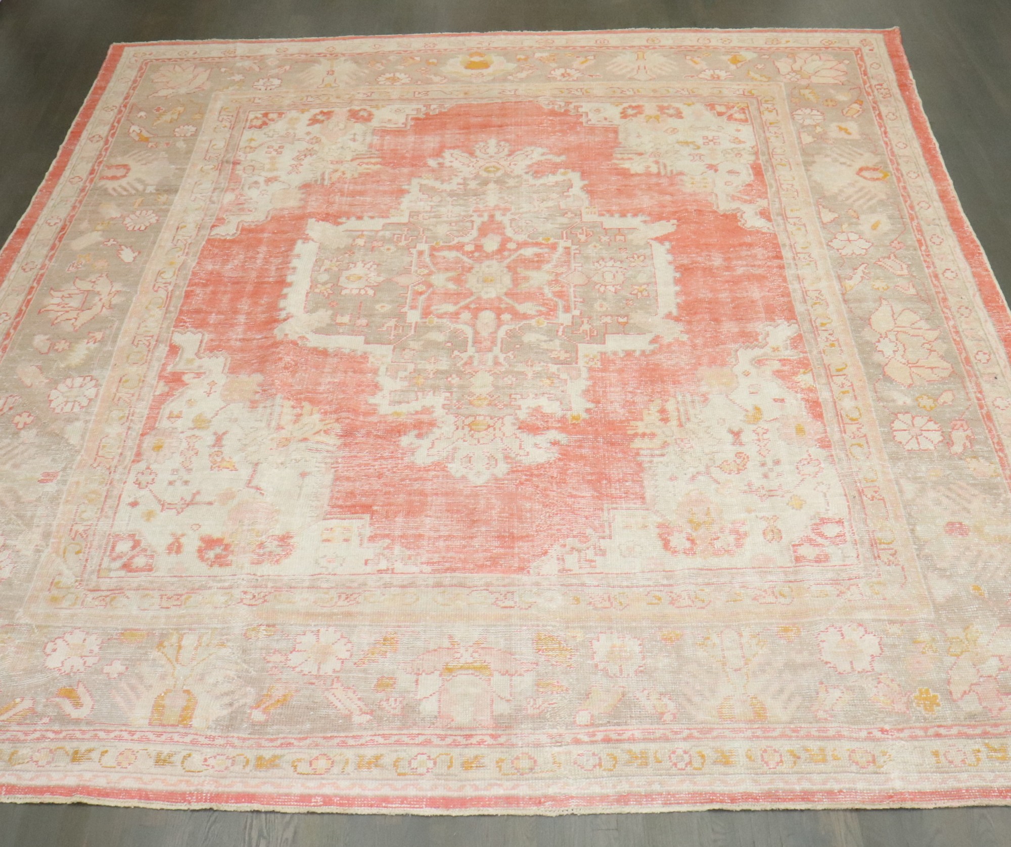 A square-size antique Turkish Oushak Rug from the early 20th century