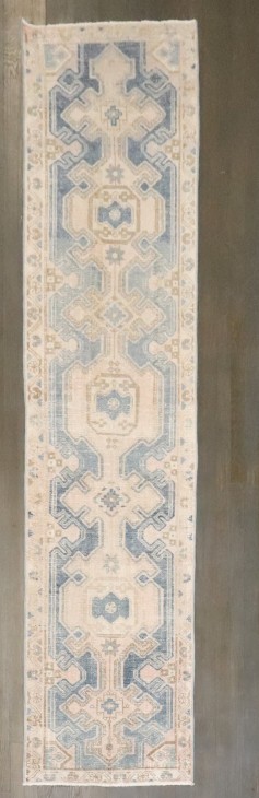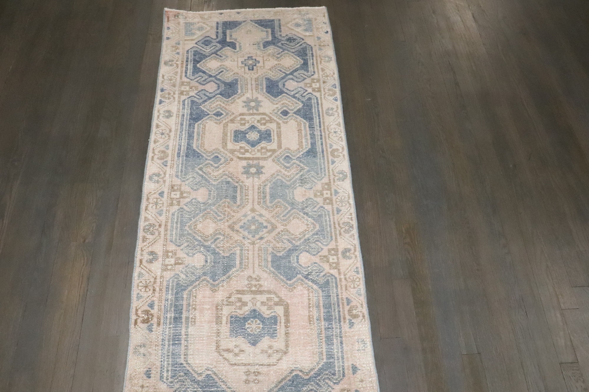 Vintage Persian Blue Cream Narrow runner rug no. j4901