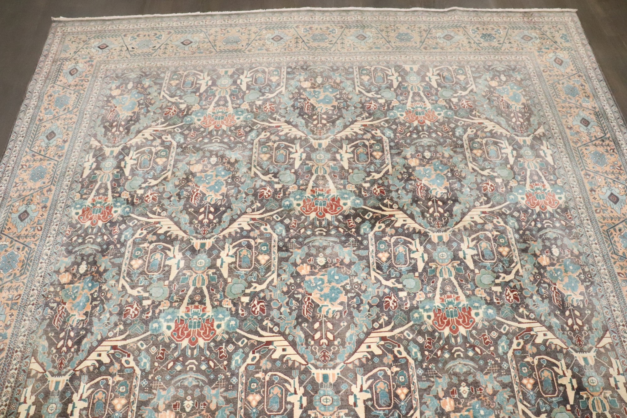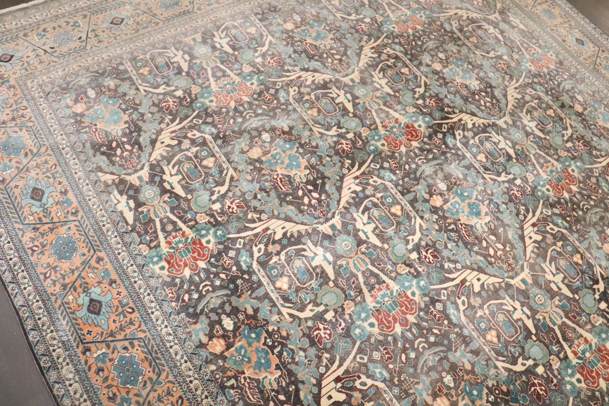 A room size persian Isfahan rug from the 3rd quarter of the 20th century.